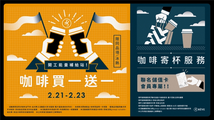開工能量補給站!咖啡買一送一 / 新聯名儲值卡會員專屬!咖啡寄杯服務
