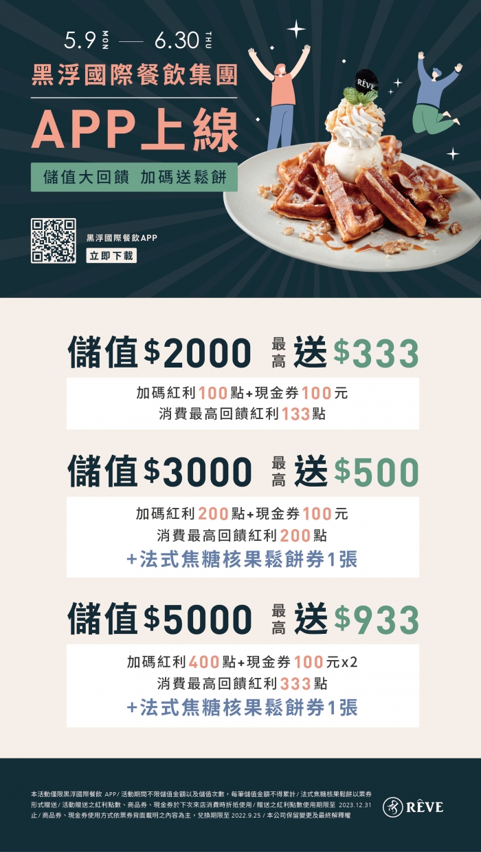 《2022年5月儲值大回饋》儲值最高送$933 加碼贈法式焦糖核果鬆餅