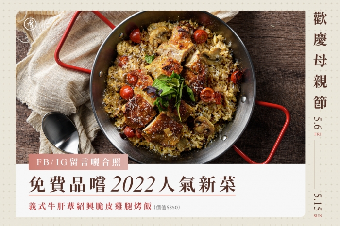 《歡慶母親節》免費品嚐頂級新菜『義式牛肝蕈紹興脆皮雞腿烤飯』